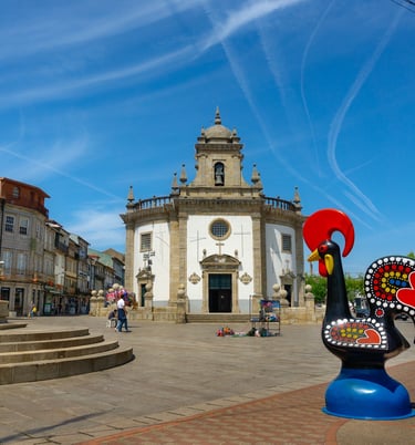 Today, Barcelos (indicated on the map below) is best known for its pottery, most notably the brightly-painted clay cockerel, whose crowing saved a man from the gallows according to the local legend.