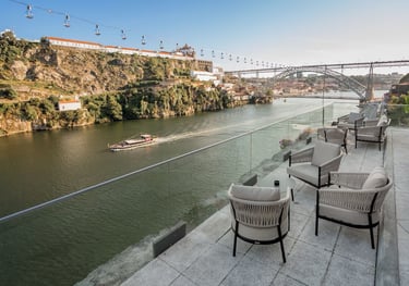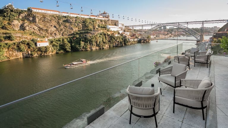 Panoramic riverfront views stretch across the Douro to iconic Louis I bridge, creating a tranquil yet central retreat. The rooftop terrace offers perfect sunset drinks. Guests appreciate returning to spacious rooms after exploring Porto's historic center just minutes away.