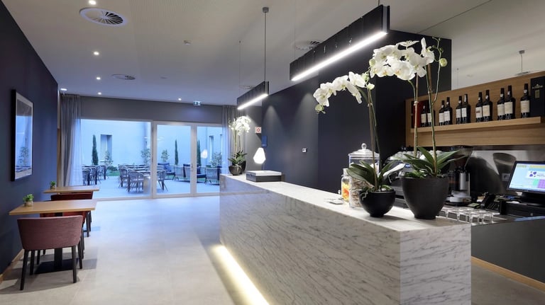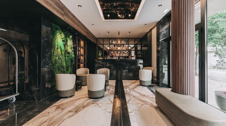 Designed for comfort and convenience, the hotel blends practical urban style with a calm, resort-like feel. Street-level spaces open onto shaded outdoor areas, while upper floors offer private balconies ideal for unwinding after a day of exploring. With its approachable elegance and well-connected location, the hotel is a comfortable base for both leisure and business travelers seeking modern amenities in a pleasant, green setting.