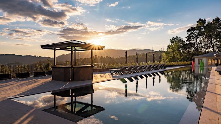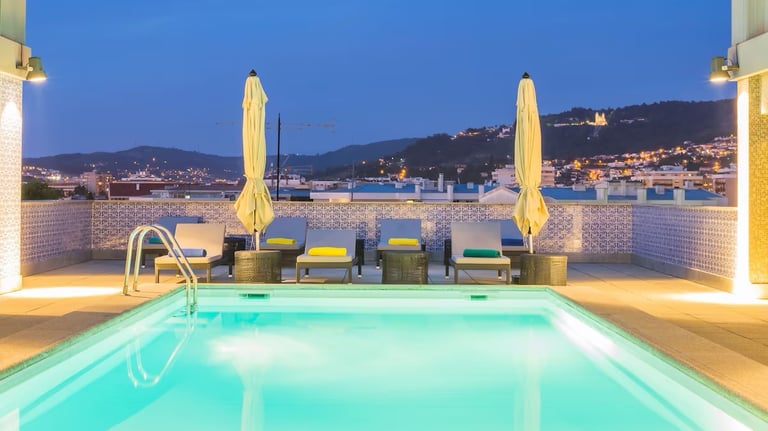 Soaring above Porto, the rooftop pool offers stunning city views and transforms into a vibrant social scene with Saturday night DJs. Near Lapa metro, this luxury retreat balances peaceful accommodations with easy access to downtown attractions.