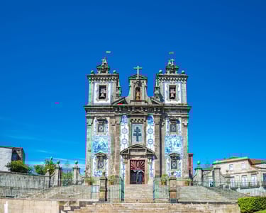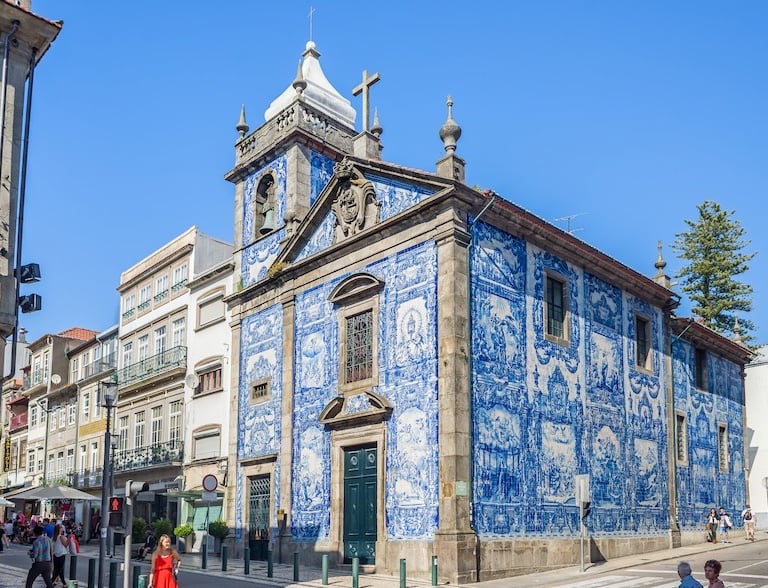 A charming small chapel, its exterior is covered in blue and white tiles that depict the lives of various saints and religious figures. The tilework, crafted in the early 20th century, is a masterpiece of Portuguese artistry and adds a unique charm to the chapel.